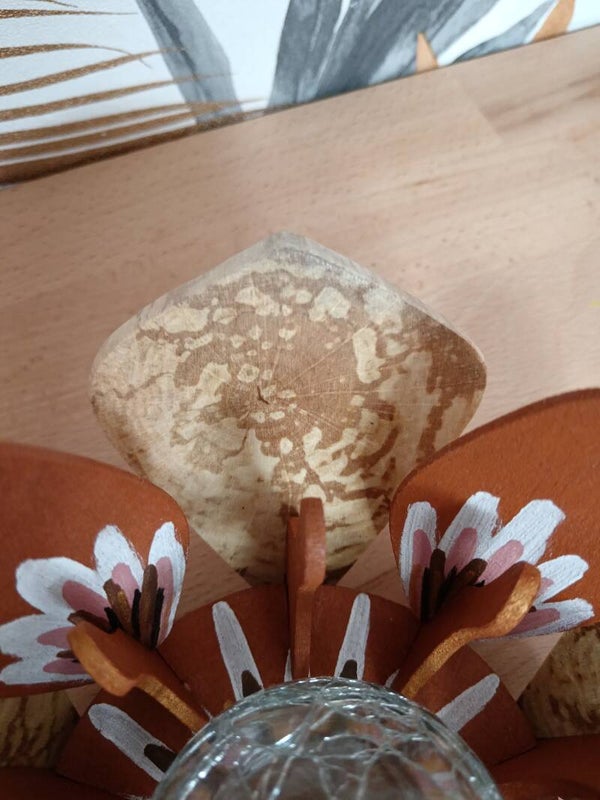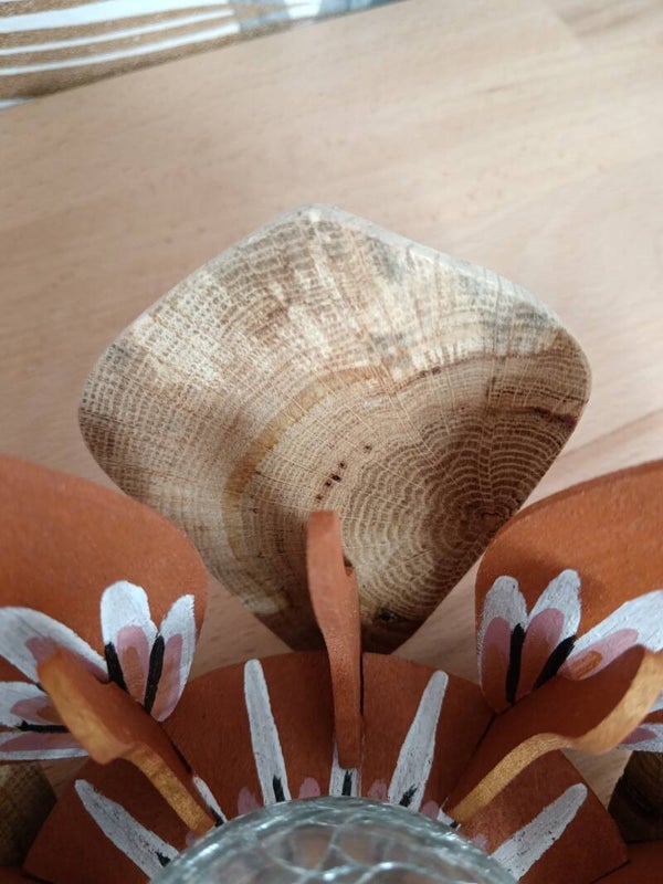 Décoration murale, à 10 pétales en chêne, pétales peintent à la main couleur terracotta.